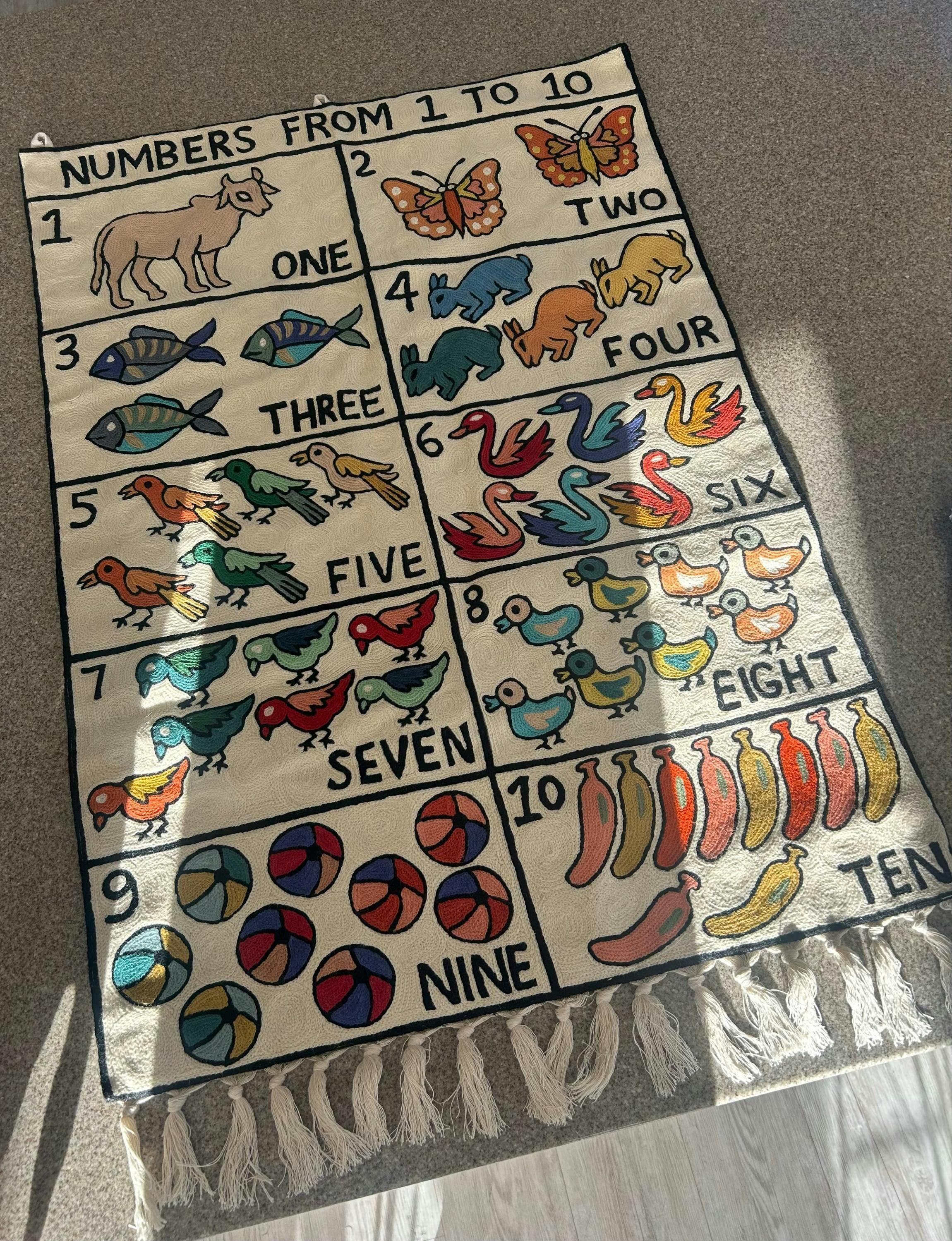 Handmade Numbers 1-10 Wall Hanging Tapestry